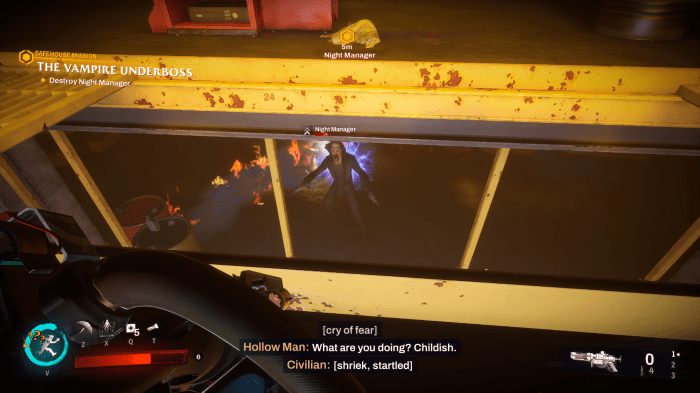 However it is all wrapped in a fundamentally broken package. AI is so stupid it often can’t comprehend looking down at you and shooting. Other times it understands the concept so well that the AI tries to shoot you through the floor of houses. The enemies in this game remind me of the worst of shovelware shooters, AI that doesn’t know how to use its environment, to target the player, or use their guns efficiently. I killed a boss vampire merely by standing on a ledge above him and breaking his pathfinding. If the guy who can teleport can’t get to me, what chance do the others have?
