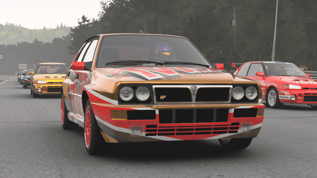 Specifically the tour locks you to the 1992 Lancia Delta HF Integrale EVO. Those are words I just typed. As I normally do with my new cars, I immediately went off to the community shop to see what players have drummed up for decals. And I was not disappointed as while this car doesn’t have many recommended wraps, I did come across what I am now dubbing the Twixmobile.