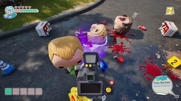 Meanwhile the weak links are the actual game design team. A lot of my time in Funko Fusion was spent wondering what the hell I’m supposed to do next, as nothing is explained well and it’s hard to tell if the game simply softlocked or if you’re just stupid. In the first Hot Fuzz level for example the game told me to follow the swan which I did. And then the swan stopped moving but the mission didn’t update. Turns out I actually had to go and speak to Tim from the movie so the piece of building could fall on his head and continue the story.