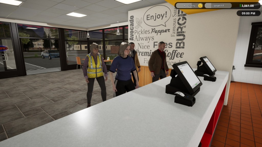 I’ve been playing Fast Food Simulator on easy mode because I personally can’t handle the crushing weight of disappointing fake people. But what I’ve found between easy mode and normal (the original normal which is now hard) is that the number of customers doesn’t go down much, you just have unlimited time to serve them and they won’t walk out.