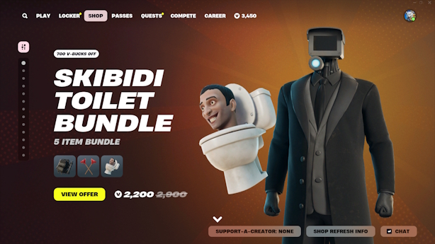 Skibidi Toilet is in Fortnite, and part of me is pretty sure I fell into a coma last week and this is all part of the dream. The bundle is on sale for 2,200 V-Bucks, meaning all the kiddos out there are sure to be screaming for their Christmas present early.