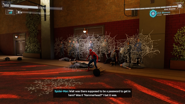 But combat in Spider-Man continues to get easier, due in part to leveling up past 50 and getting more buffs to my attacks.