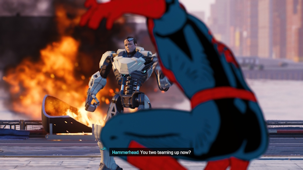 The whole story arc of Hammerhead is kinda crap, with him turning into a head on a robot body. He just kinda pops back up with “hey Spidey I’m a robot now, I’m robot Hammerhead!” And it’s never really addressed after that. It’s also really boring how everything seems to be converging on Sable tech in this world. I’d rather go back to beating up normal bad guys and Spider Man’s roster of villains than deal with more Sable-teched up goons in Miles Morales.